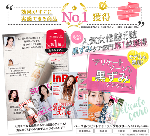 ハーバルラビットは人気女性誌6誌の黒ずみケア部門第1位獲得している人気商品。