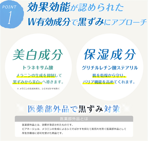 | 注目成分 | トラネキサム酸・グリチルレチン酸ステアリル |