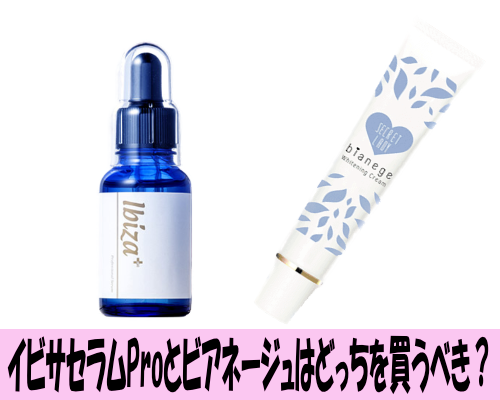イビサセラムProとビアネージュのどっちにするか違いがよくわからず判断できない方は多いでしょう。 どちらも人気商品なので失敗が少ない点は安心かもしれませんね。 そこでこのサイトでは真剣に黒ずみケアを始めたい方に向けて、イビサセラムProとビアネージュどっちがいいか、違いを徹底比較し大事なポイントごとにオススメ理由を説明します。 イビサセラムProとビアネージュの基本情報