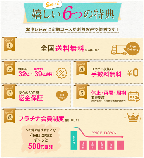 公式サイトはプラチナ会員制度があり4回目以降はずっと500円OFFになることも魅力ですね。