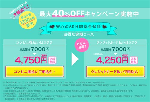 公式サイトならお得に定期購入ができますし、返金保証60日間あることも買いやすい理由になるでしょう。