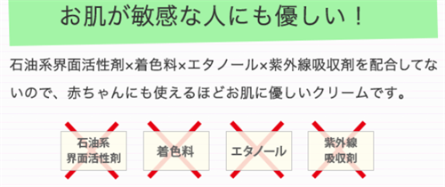 ハーバルラビットは石油系界面活性剤・着色料・エタノール・紫外線吸収剤の4つの添加物フリーで赤ちゃんでも使える優しいクリームです。