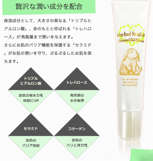 ハーバルラビットは医薬部外品で有効成分を配合しており、デリケートな肌にも使えるよう成分には大変気を使っています。