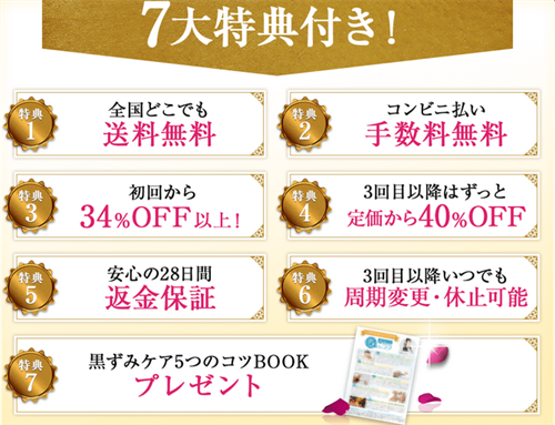 公式サイトでは「集中美白コース」という定期購入があり、お近くのコンビニで簡単後払いにすると特別価格で34%OFFの税込10,780円。