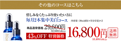 また、割引率が最も高いのは、毎月2本の集中美白コースを選択した場合で、43%OFFの特別価格となっています