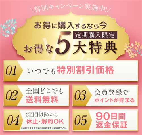 キャンペーン中に公式サイトから定期コースをオーダーすると2回目以降からサイクル変更可能になることも特典です。