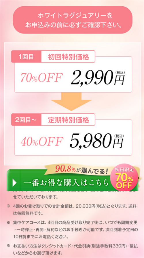 ホワイトラグジュアリープレミアの最安値は販売店の公式サイトの場合、定期コースがオススメです。